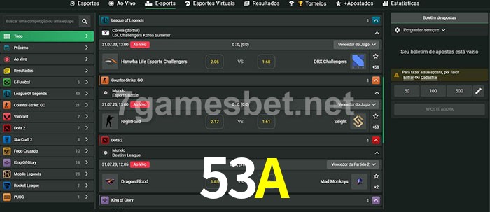 A aposta 53A oferece aos jogadores a experiência mais conveniente de apostas em eSports!